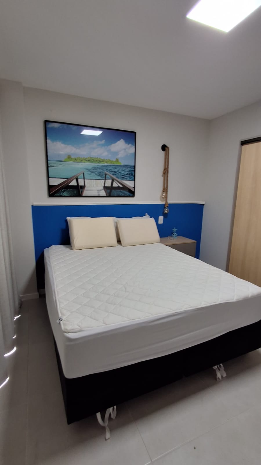 • Quarto 01: Suíte + cama queem + guarda-roupa.